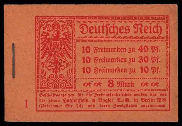1921, 8m Germania booklet (Michel MH14.1A), complete and unexploded, stuck down to interleaves, Fine to Very Fine. Michel €230 ($250). (Image)