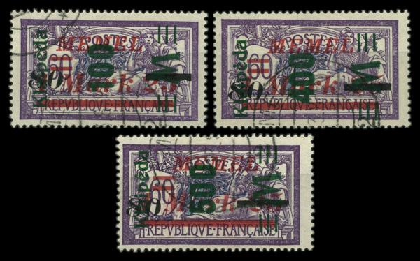 1923, Liberty and Peace from France issue surcharged and overprinted (Scott N28-N30), complete set of single, Fine to Very Fine. Scott $180. (Image)
