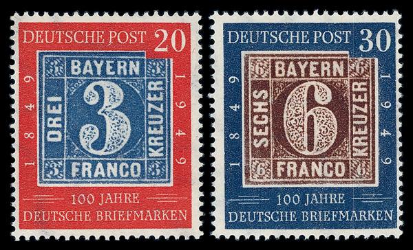 1949, 20pf-30pf German Stamp Centenary (Scott 667-668), set of 2, o.g., never hinged, Fine to Very Fine. Scott $68. (Image)