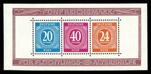 1946, Numerals souvenir sheets perforated and imperf set (Scott B294-B295), complete matched set of souvenir sheet of 3, o.g., never hinged, Very Fine. Scott $90. (Image)