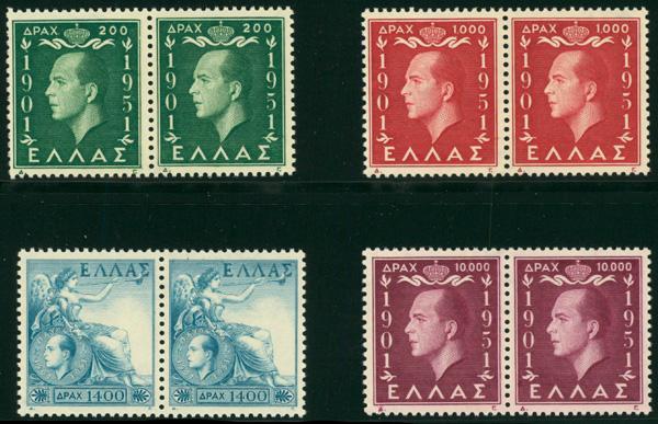 1952, 200d-10,000d King's Birthday, complete (Scott 545-548), set of 4, pairs, o.g., never hinged, Very Fine to Extremely Fine. Scott $176. (Image)