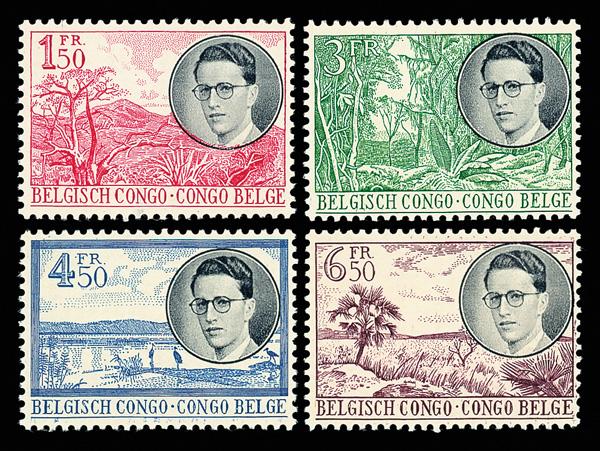 1955, 1.50fr-6.50fr King Bauduin & Views, complete (Scott 290-297), set of 8, o.g., never hinged, Fine to Very Fine. Scott $90. (Image)