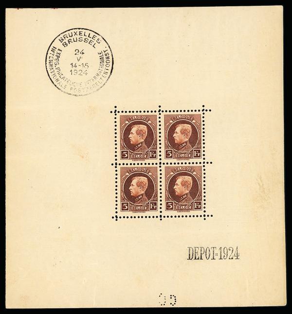 1924 Brussels Exhibition souvenir sheet (Scott 171), o.g., never hinged, Very Fine. Michel 186 var. Scott $400. (Image)