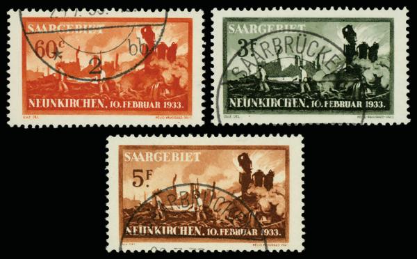 1933, Neunkirchen Explosion Aid, complete (Scott B44-B45), set of 3, Very Fine. Scott $165. (Image)
