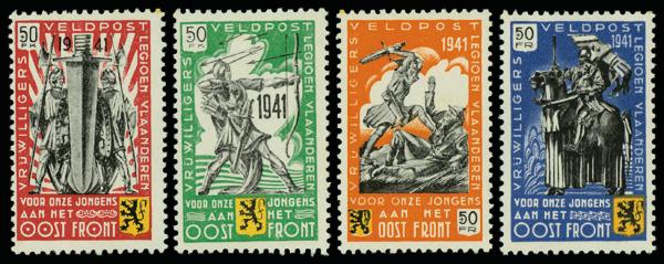 1941, +50fr Flemish Legion, complete, set of 4, o.g., hinge remnants, Fine to Very Fine. Michel I-IV; €50 ($50). (Image)