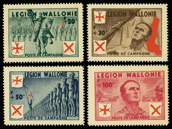 1942, +20fr-+100 Walloon Legion, complete, set of 4, o.g., hinge remnants, Extremely Fine. Michel I-IV; €75 ($80). (Image)