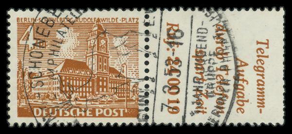 1949, Building 4pf yellow brown, booklet single with tab, Fine to Very Fine. Michel W29. Scott $100. (Image)