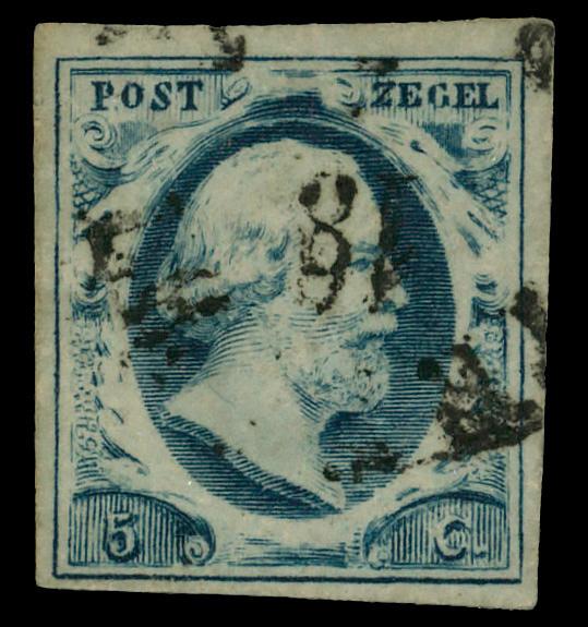 1852, First Issue, 5c dark blue (Scott 1c), single, Fine to Very Fine. Michel 1a var. NVPH 1 var. Scott $35. (Image)
