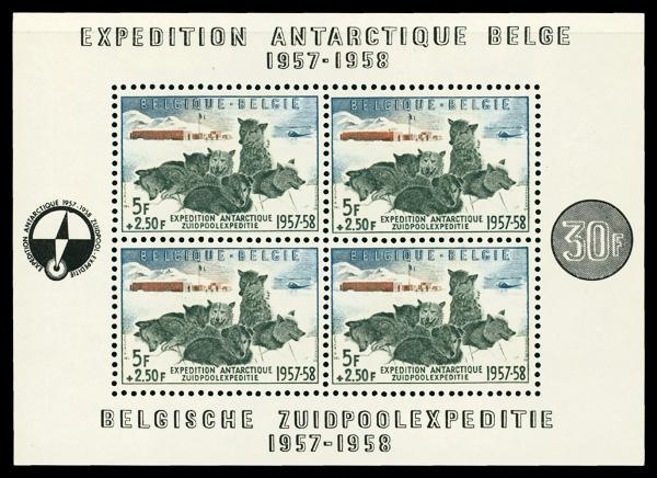 1957 Antarctic Expedition souvenir sheet (Scott B605a), o.g., never hinged, Very Fine to Extremely Fine. Michel Block 25. Scott $175. (Image)