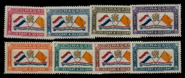 1941, Flag of the Netherlands and House of Orange, "Netherlands Shall Rise Again" (Scott CB1-CB8), complete set of singles, o.g., lightly hinged, Fine to Very Fine. Scott $256. (Image)