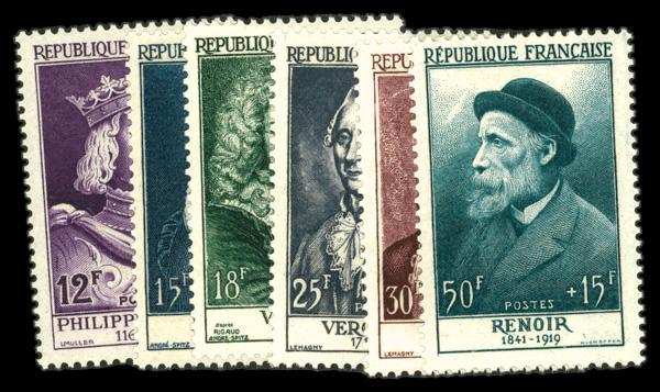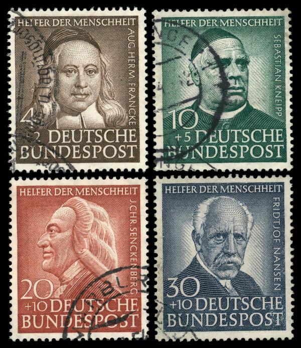 1955, Famous Men complete (Scott B294-B299), complete set of singles, o.g., never hinged, Fine to Very Fine. Scott $111. (Image)