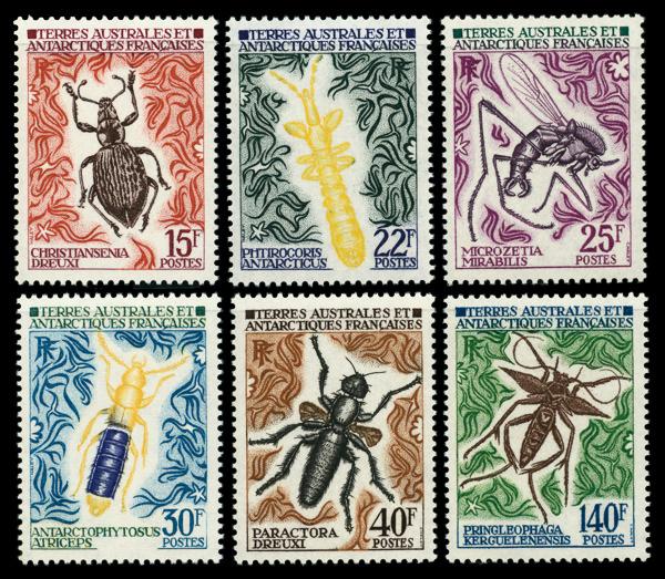 1972, 15fr-140fr Insects, complete (Scott 46-51), set of 6, o.g., lightly hinged, Extremely Fine. Scott $59. (Image)