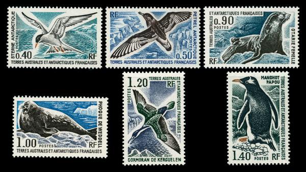 1976, 40c-1.40fr Antarctic Wildlife, complete (Scott 58-63), set of 6, o.g., never hinged, Extremely Fine. Scott $50. (Image)