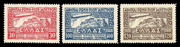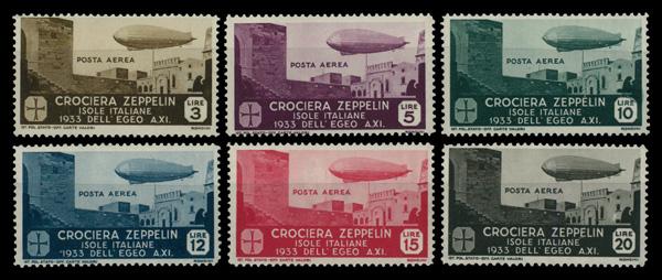 1933, Graf Zeppelin over Rhodes Complete (Scott C20-C25), complete set of singles, o.g., hinged, Fine to Very Fine. Scott $510. (Image)