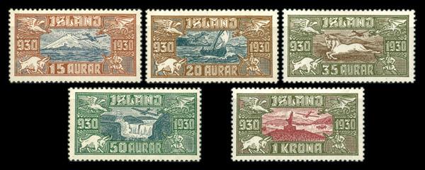 Airmail, 1930, Parliament Millennium complete (Scott C4-C8), set of 5, complete set of singles, o.g., lightly hinged, Fine to Very Fine. Michel 142-146. Facit 189-193. Scott $206. (Image)