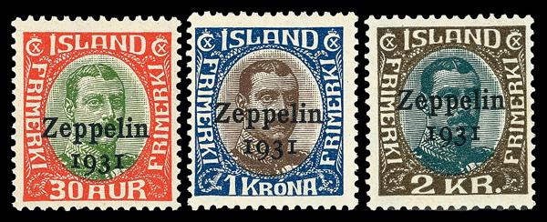 Airmail, 1931, Zeppelins complete (Scott C9-C11), set of 3, complete set of singles, o.g., lightly hinged, Very Fine. Michel 147-149. Facit 162-164. Scott $97. (Image)