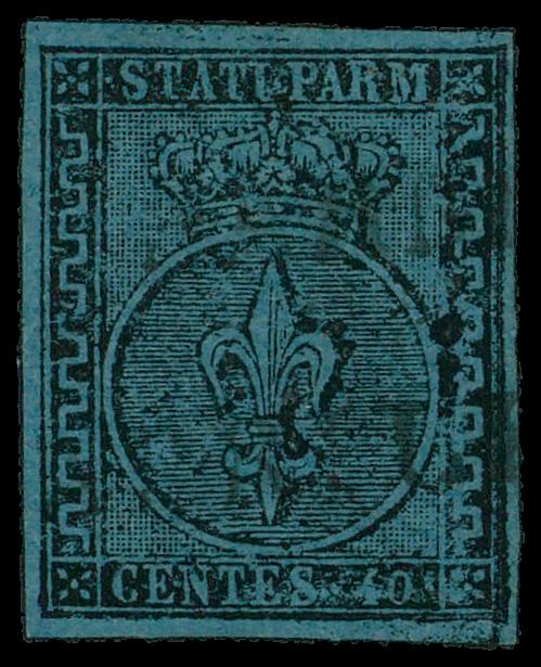 1852, 40c black on blue (Scott 5), single, Fine to Very Fine. Sassone 5. Scott $550. (Image)
