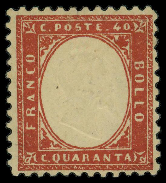 1862, King Victor Emmanuel II, 40c red (Scott 20), single, o.g., hinged, Fine to Very Fine. Scott $250. (Image)