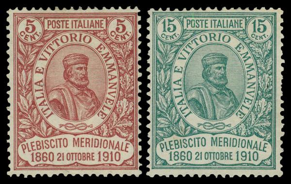 1910, Giuseppe Garibaldi complete (Scott 117-118), complete set of singles, o.g., hinged, Fine to Very Fine. Scott $350. (Image)
