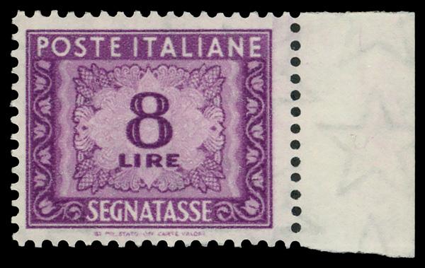 1955, 8l rose violet (Scott J85), right margin single, o.g., never hinged, Fine to Very Fine. Scott $175. (Image)