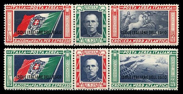 1933, Balbo Flight issue overprinted complete (Scott C26-C27), complete set of singles, o.g., never hinged, Very Fine to Extremely Fine. Scott $305. (Image)