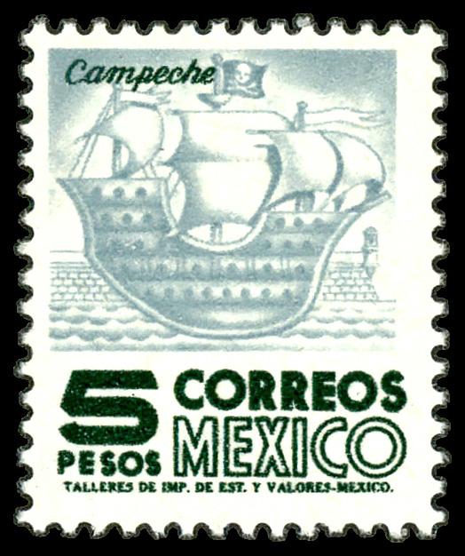 1966, Arms of Campeche, 5p ultra & blue green (Scott 951), single, o.g., never hinged, Fine to Very Fine. Scott $100. (Image)