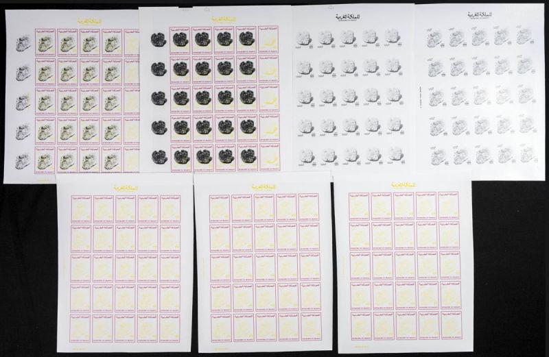 |**|Yvert 721/22. 1975. Minerals. Group of progressive plate proofs of the set. TO EXAM. Description of lots is limited to the cataloguing of the stamps and their characteristics. The total of the material included in each case is photographed to allow an assessment of the quantity and distribution of the offered pieces. In case of doubt or discrepancy, the images will always prevail over the description. (Image)