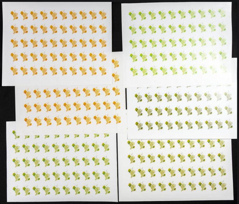 |**|Yvert T60/63. 1974. Postage due, fruits. Group of progressive plate proofs of the set. TO EXAM. Description of lots is limited to the cataloguing of the stamps and their characteristics. The total of the material included in each case is photographed to allow an assessment of the quantity and distribution of the offered pieces. In case of doubt or discrepancy, the images will always prevail over the description. (Image)