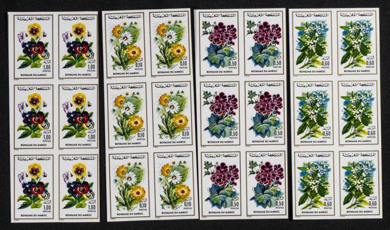|**|Yvert 726/29. 1975. Flowers. Group of IMPERFORATED sets. TO EXAM. Description of lots is limited to the cataloguing of the stamps and their characteristics. The total of the material included in each case is photographed to allow an assessment of the quantity and distribution of the offered pieces. In case of doubt or discrepancy, the images will always prevail over the description. (Image)
