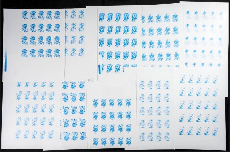 |**|Yvert 726/29. 1975. Flowers. Group of progressive plate proofs of the set. TO EXAM. Description of lots is limited to the cataloguing of the stamps and their characteristics. The total of the material included in each case is photographed to allow an assessment of the quantity and distribution of the offered pieces. In case of doubt or discrepancy, the images will always prevail over the description. (Image)