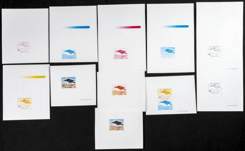 |**|Yvert 753. 1976. Coran school. Group of progressive plate proofs of the set. TO EXAM. Description of lots is limited to the cataloguing of the stamps and their characteristics. The total of the material included in each case is photographed to allow an assessment of the quantity and distribution of the offered pieces. In case of doubt or discrepancy, the images will always prevail over the description. (Image)