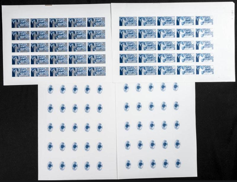 |**|Yvert 701/02. 1974. U.P.U. centenary. Group of progressive plate proofs of the set. TO EXAM. Description of lots is limited to the cataloguing of the stamps and their characteristics. The total of the material included in each case is photographed to allow an assessment of the quantity and distribution of the offered pieces. In case of doubt or discrepancy, the images will always prevail over the description. (Image)