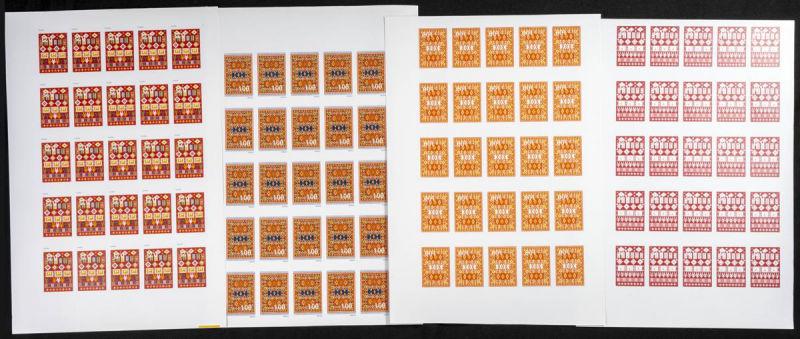 |**|Yvert 731. 1975. Folklore festival. Group of progressive plate proofs of the set. TO EXAM. Description of lots is limited to the cataloguing of the stamps and their characteristics. The total of the material included in each case is photographed to allow an assessment of the quantity and distribution of the offered pieces. In case of doubt or discrepancy, the images will always prevail over the description. (Image)
