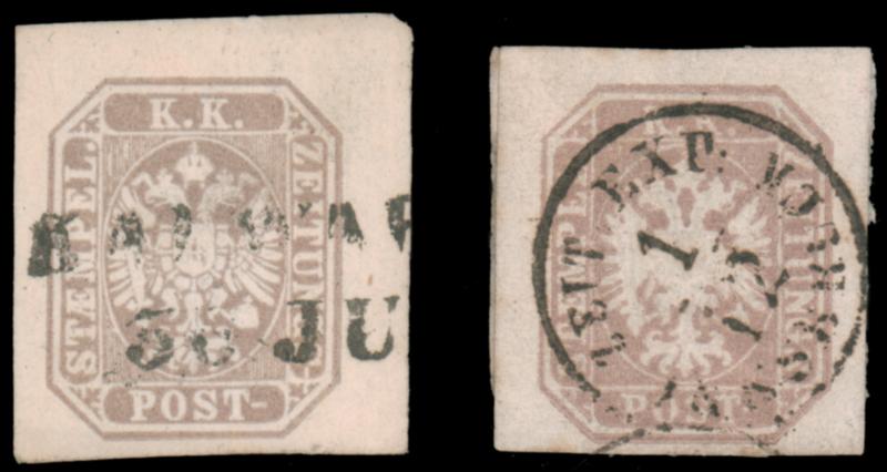 AUSTRIA, 1863, (1.05kr) GRAY & GRAY LILAC (BOTH SHADES) USED, #P6, P6a, full margins, very fine, cat. $36.50 (Image)