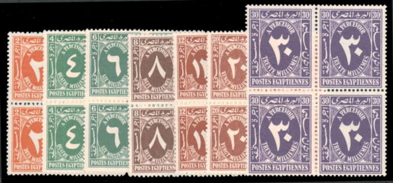 EGYPT, 1960 POSTAGE DUE BLOCK SET NH, #J47-J53, fresh and fine-very fine, cat. $144.00 (Image)