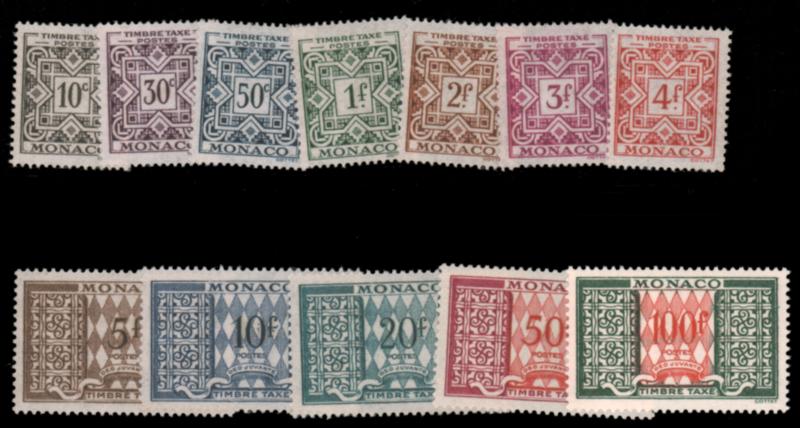 MONACO, 1946-57, POSTAGE DUES SET MINT, #J28-J38A, fresh and very fine, cat. $70.70, Maury @ €44.00 (Image)