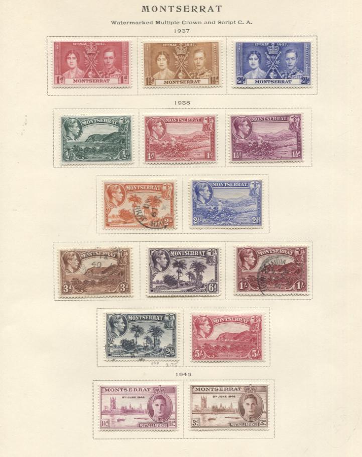 MONTSERRAT, 1937-1951, COLLECTION ON ALBUM PAGES MOSTLY MINT, some used, includes nos. 114-126*, 128-142*, fresh and very fine, cat. $218.00 (Image)
