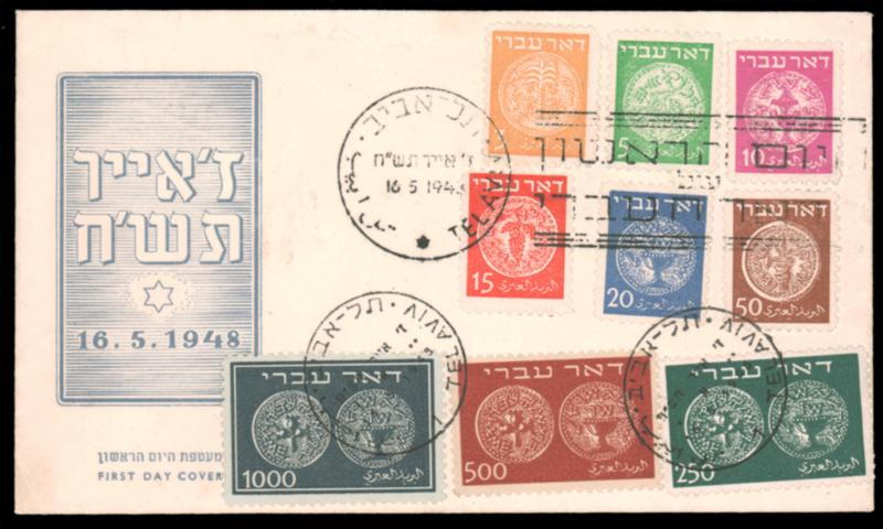 ISRAEL, 1948 COIN SET FDC, #1-9, fine-very fine (Image)