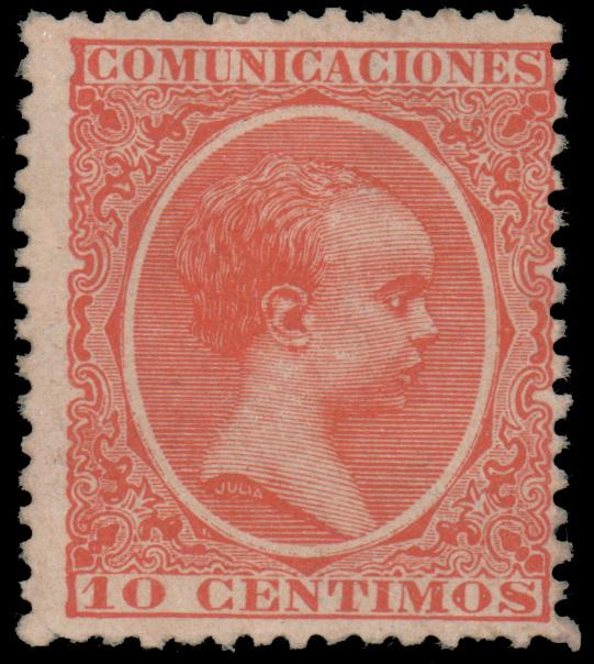 SPAIN, 1899, 10c RED MINT, #260, o.g., h.r., fine, signed Scheller, cat. $200.00 (Image)