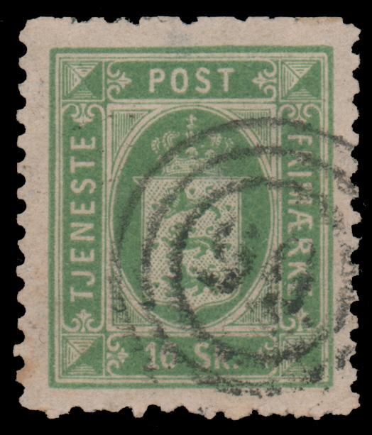 DENMARK, 1871, 16s GREEN PERF 12½ OFFICIAL USED, #O5, perfectly centered, tiny thin spot, very fine, cat. $600.00 (Image)