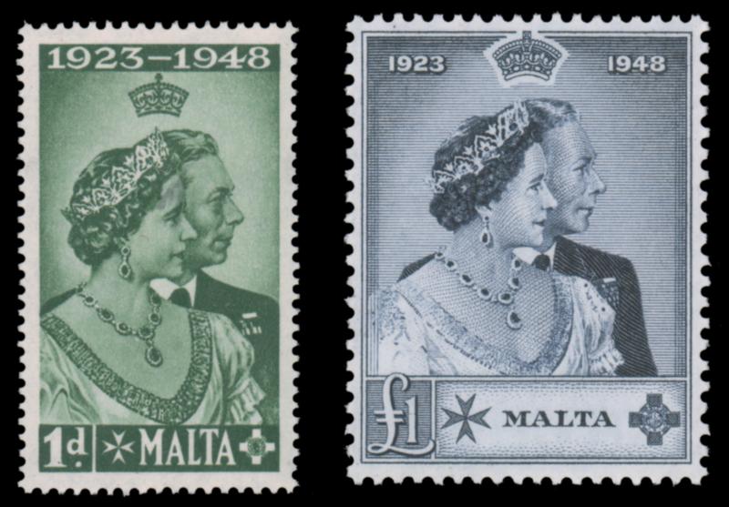 MALTA, 1948 SILVER WEDDING SET NH, #223-24, very fine, cat. $40.55 (Image)