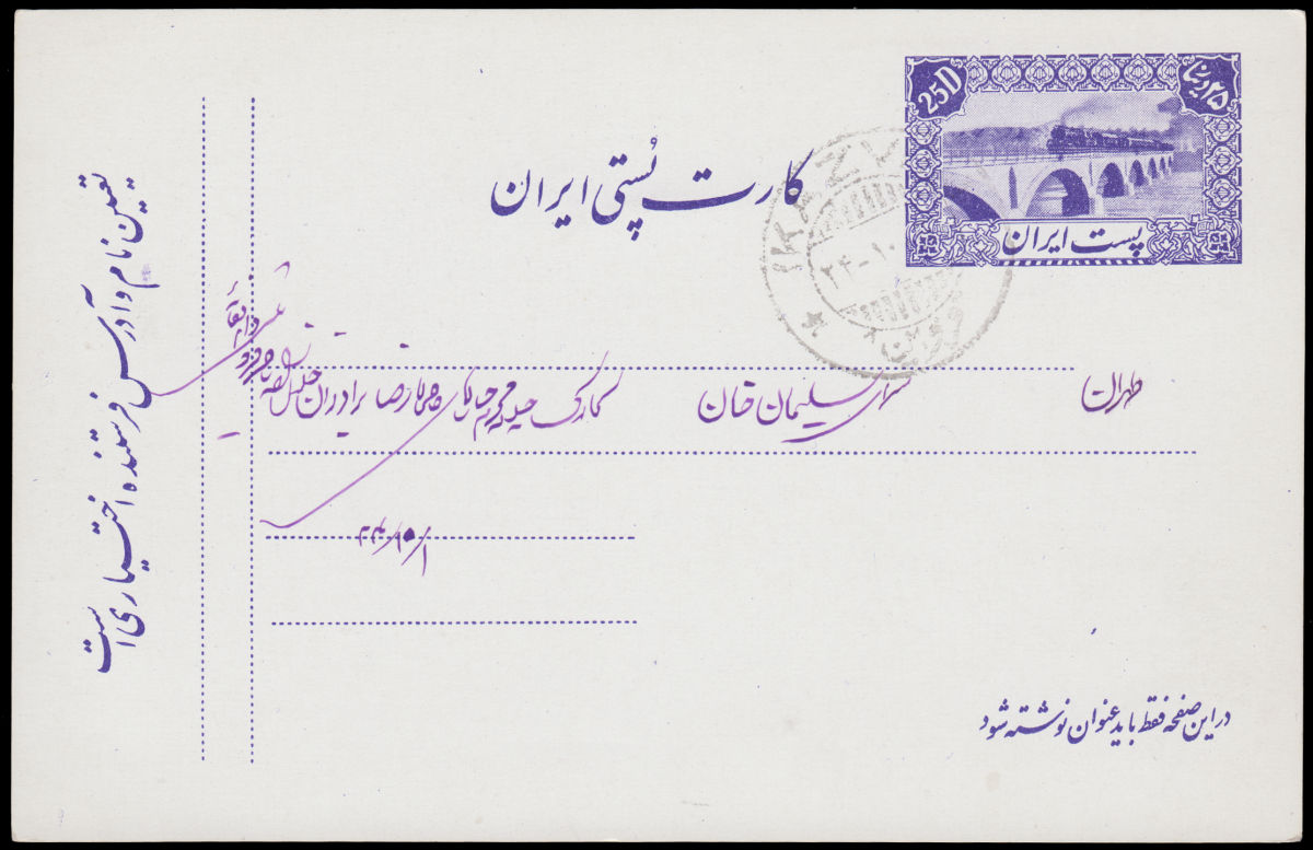 IRAN Pre-stamped postcard 25D with Railway Bridge design used. $0 (Image)