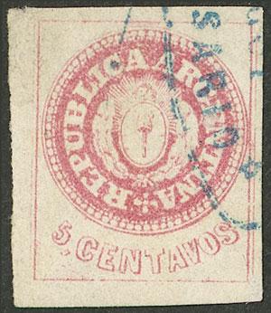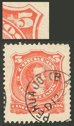 GJ.14, 5c. without accent, worn plate, used in Rosario, VF quality (Image)