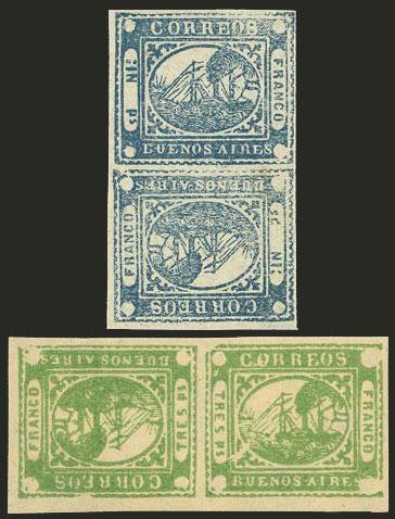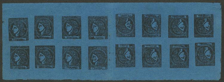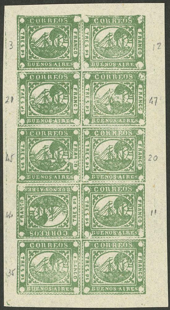 Reprint of the Tres Ps, block of 10 with identified positions, including tete-beche (Image)