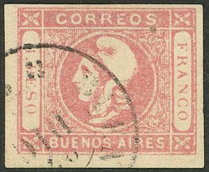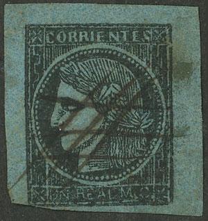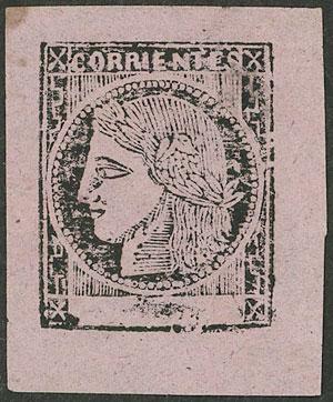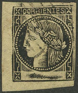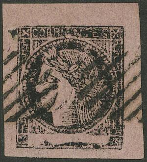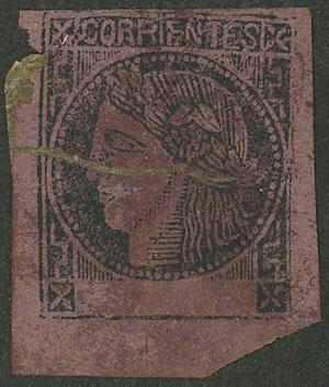 GJ.14, 3c. light lilac, type 5, with double 9-bar cancel of Corrientes, there is a hole in the margin not affecting the vignette (Image)