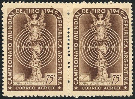 GJ.974, 1949 World Shooting Championship, PROOF in the adopted color on opaque paper, PERFORATED pair (very rare), excellent quality! (Image)