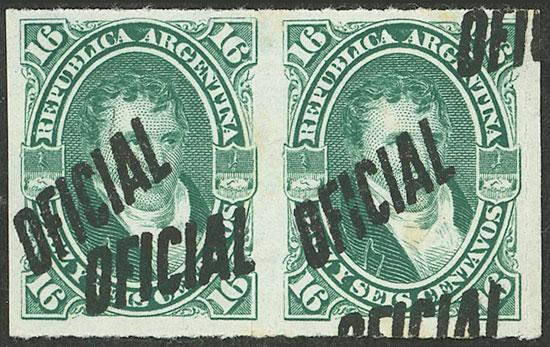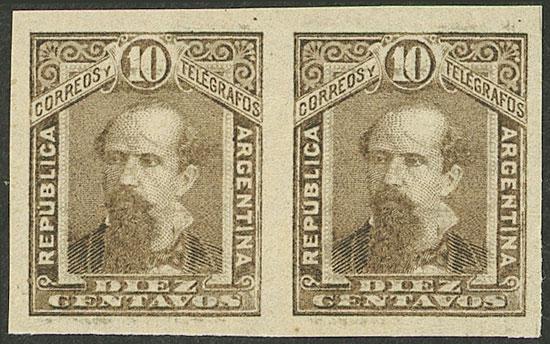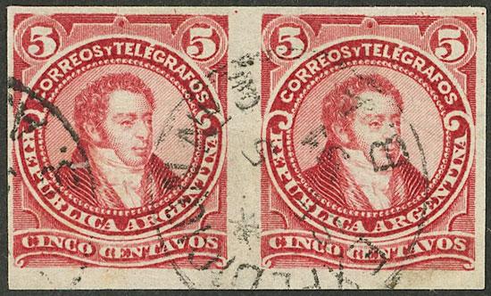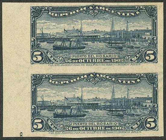 GJ.273P, 1902 Port of Rosario, imperforate pair, excellent quality, rare! (Image)