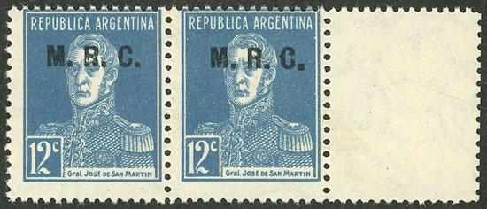 GJ.606CD, 12c. San Martín w/o period, M.R.C. overprint, WITH RIGHT LABEL, MNH (+50%), excellent! (Image)