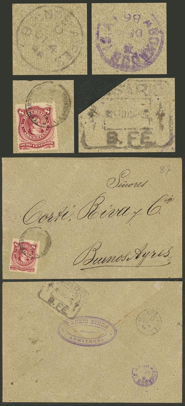 3/DE/1886 ARMSTRONG - Buenos Aires, cover franked with 8c., with datestamp of "ESTn. ARMSTRONG - F. C. ARGENTINO", on back transit mark of Rosario and arrival, rare and very interesting! (Image)