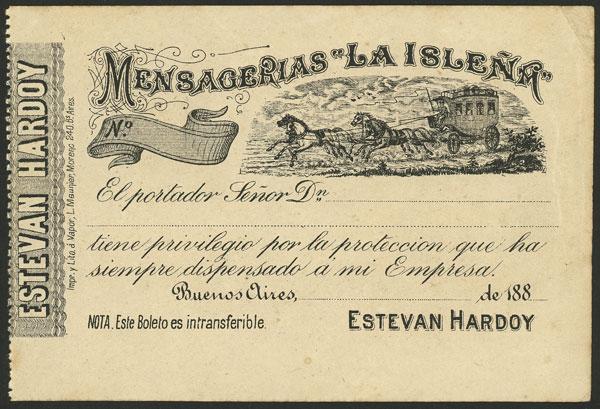Circa 1880, unused ticket of Mensajería La Isleña, excellent, very rare! (Image)